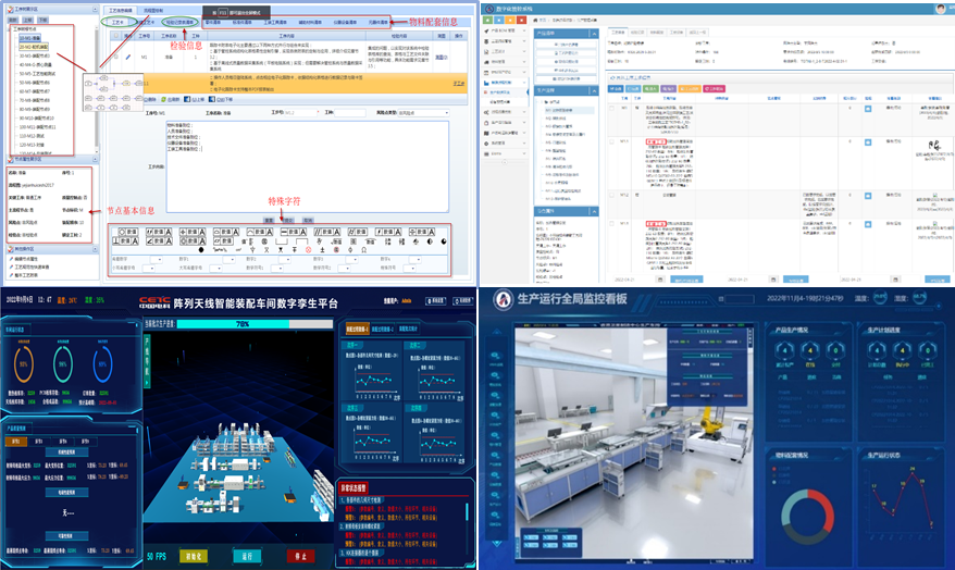开展了装配车间数字孪生、装配工艺知识图谱和数字孪生、装配制造执行系统和动态调度等技术和方法研究,开发了复杂产品装配过程管控系统、装配车间数字孪生可视化监控与仿真系统等。