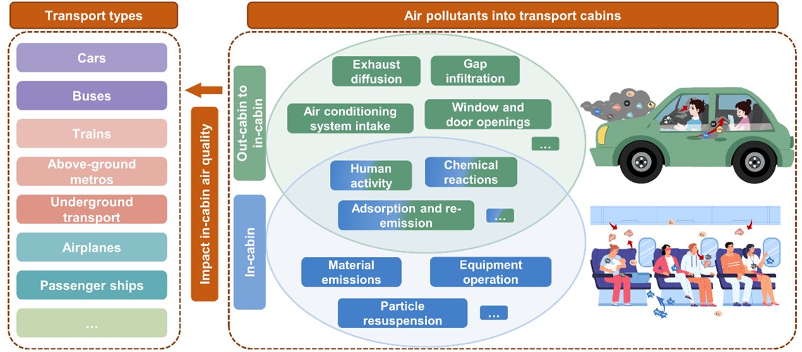 图1. 陆海空交通工具座舱环境污染及健康影响