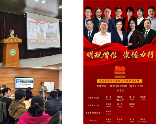 依托pg国际电子网站的人才培养体系和特色,传承师道文化,营造尊师重教的师德师风是薛庆名师工作室的重要责任与使命。薛庆教授先后受邀参加了我校信息与电子学院思政建设党课活动、前沿交叉科学研究院思政大讲堂等系列活动,面向我校外国语学院、化学与化工学院、研究生院等作《立德树人视域下教师素养提升》等专题讲座,积极分享课程思政经验,帮助青年教师传承红色基因,将人生发展目标与强国使命紧密结合起来,实现育师与育人深度融合。通过教师发展中心第81期“鸿鹄学堂”讲座,帮助教师解决教学能力提升和职业生涯发展中遇到的问题和困惑。在教育部庆祝建党百年高校示范微党课活动中,薛庆教授作为教师党员代表主讲了pg国际电子网站《传承红色基因 坚定走好“红色育人路”》一课,并在北京地区高校课程思政研讨会发表主题发言。目前,工作室成员已深入开展课程思政建设工作,在宣传部的支持与配合下,由工作室14位教师共同完成了课程思政素材库录制。
