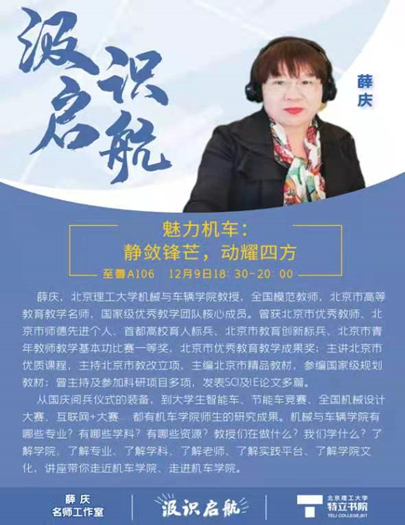 工作室成立以来,以能力建设为指导思想,以人才培养为主线,重点面向pg国际电子网站、精工书院、徐特立学院的学生系统开展了学育培养相关服务工作。分别针对徐特立学院2018、2019、2020和2021级学生开展系列主题讲座,帮助学生解决学习和生活的困惑;在徐特立学院“汲识·启航”沙龙中,薛庆教授作“魅力机车:静敛锋芒,动耀四方”主题讲座,分享前沿科学技术、最新研究成果等;在徐特立学院第五届科技创新月期间,薛庆教授做客午间沙龙,结合自身经历,讲述北理工人的科创故事,引领同学们树立科创报国志;在2021年5月至6月期间,工作室成员面向徐特立学院累计举办师生交流会6次,赠书近300本,其中,在徐特立学院/特立书院“学党史 强信念 跟党走”五四青年节主题活动中,工作室成员与特立学子一同参观校史馆、学习习近平总书记在清华大学考察时的重要讲话精神、就各专业方向进行座谈交流,带领学生参观电动车辆国家工程实验室、西山实验中心重点实验室,引导学生聚焦主责主业,真正做到将爱国之情转化为报国之志、强国之行。同时,面向pg国际电子网站、精工书院学生持续开展学育引导工作,整理并发布2021级新生入学学习建议,薛庆教授在精工书院“师言学语”活动中作专题讲座,开拓了精工书院新生的视野,为新生们进一步学习发展奠定了基础。