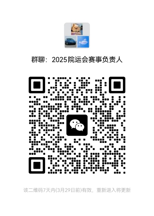 3.请以班级为单位推选班级运动会负责人(每班一名)扫描下方二维码进入“2025年学院运动会赛事负责人群”。