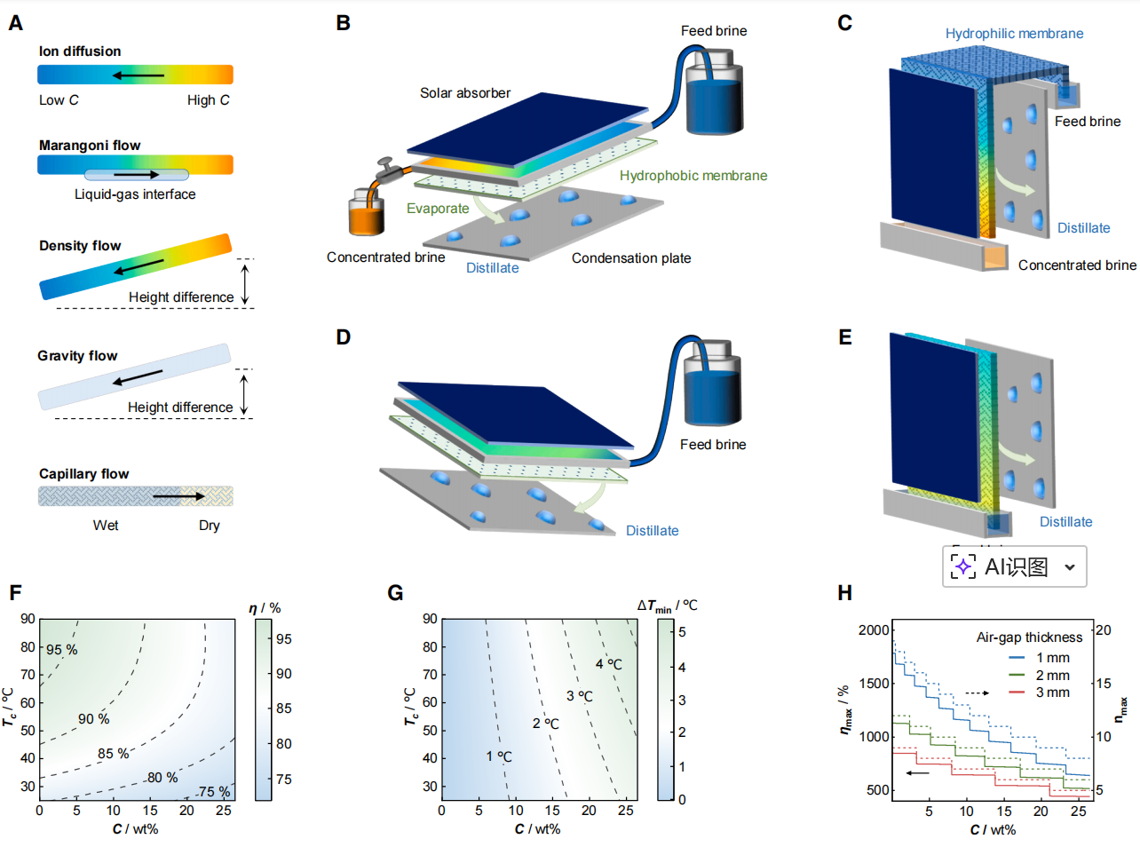 图2 盐水环境下的可持续逆向蒸发太阳能蒸馏过程与性能