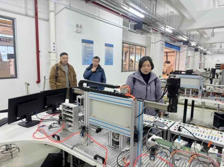工训中心副主任马树奇对周强一行的到访表示热烈欢迎,并介绍了中心在实践育人方面的探索与特色,随后带领参观了智能制造生产线、数控及传统加工实践区,双方对场地建设、设备配置与使用、师资队伍建设情况进行了交流。