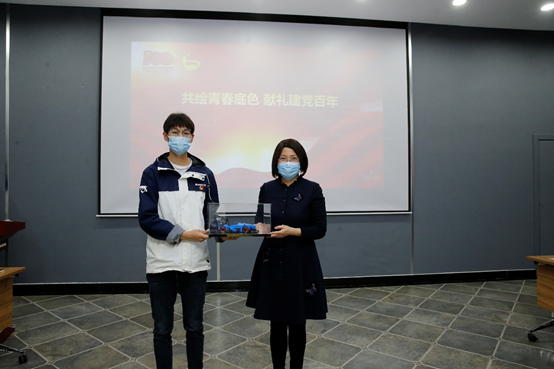 随后,方程式赛车队团支部学生代表结合建党100周年主题将自己设计的3D打印方程式赛车模型现场涂色,并向汪鸿雁赠送了方程式赛车模型。