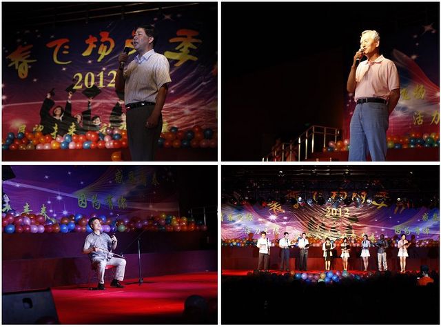 李和章副书记、副校长以一首《酒神曲》表达了学校对学生们的美好祝愿,现场观众共同跟随歌唱,将晚会气氛推向高潮。李和章代表学校向关心学生、参与表演的各位老师表示感谢,对工科学生们主导的文艺演出进行了高度评价,希望同学们牢记胡锦涛总书记在建团90周年讲话中对青年提出的要求和期望,成长成才,回报社会,造福人民,在为党和人民事业的奋斗中创造人生辉煌。