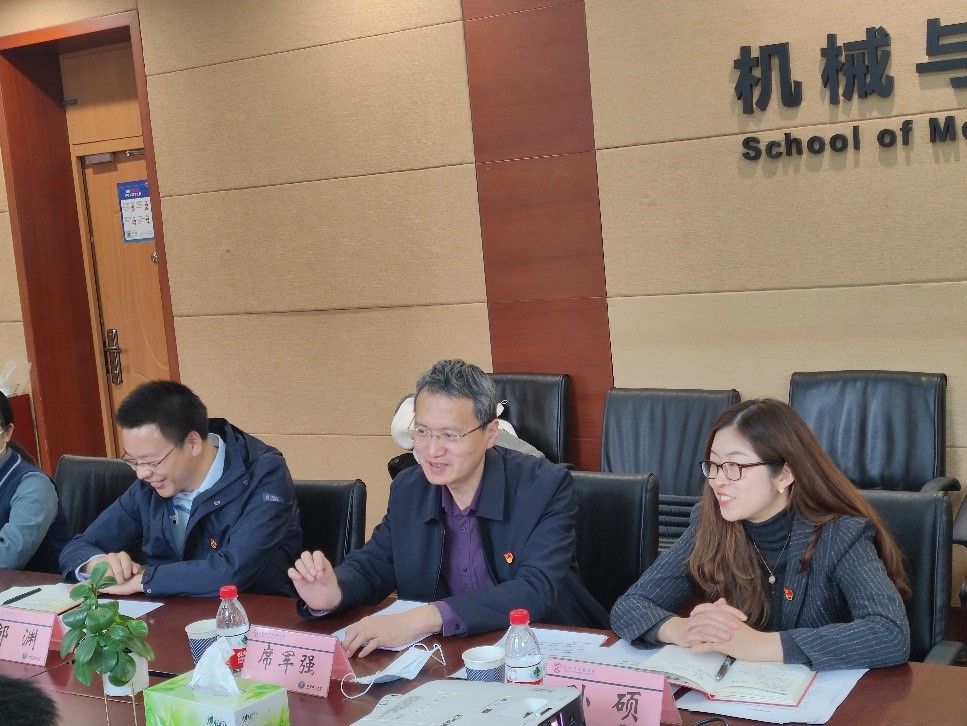 为深入学习贯彻习近平总书记在党史学习教育动员大会上重要讲话精神,提升支部工作能力,加强校企纵向深度合作,促进人才培养和科研合作同向同行,11月5日pg国际电子网站电动车研究生第四党支部与中国航天科工集团四院四部四室党支部举办联学共建活动。航天四院四部党委书记周逸、人力资源处副处长吴居宜、四室党支部书记陶磊、副主任王志宽、及四室党员代表,pg国际电子网站党委书记席军强,党委副书记、副院长孙硕,党委委员、车辆系党总支书记邹渊,生涯发展服务中心副主任邹晓航,电车四党支部书记章伟及支部委员,共15人参加活动。活动由孙硕主持。