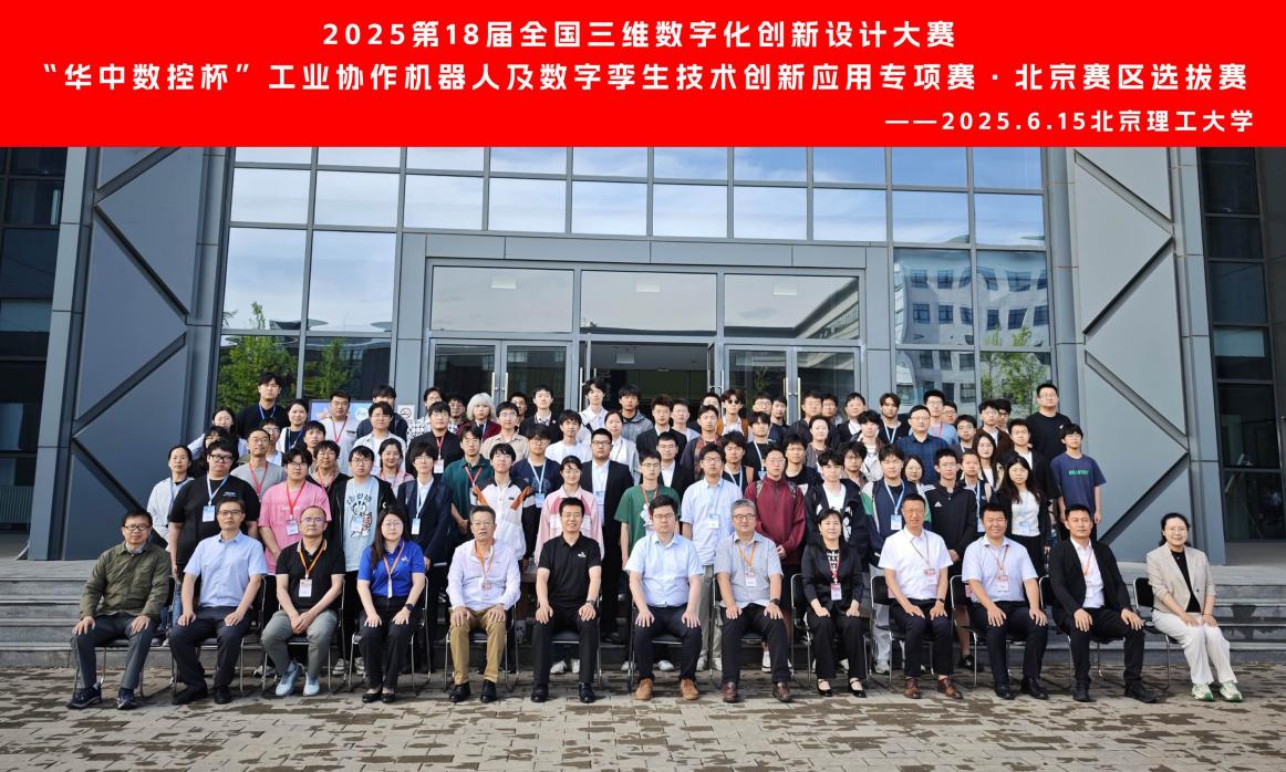 6月15日,2025第18届全国三维数字化创新设计大赛“华中数控杯”工业协作机器人及数字孪生技术创新应用专项赛(北京赛区选拔赛)在我校良乡校区工程训练中心圆满落幕。大赛由全国三维数字化创新设计大赛北京组委会、pg国际电子网站pg国际电子网站主办、工程训练中心承办,赛事汇聚了北京地区十余所高校的百余名学子同场竞技。