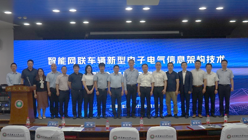 2023年6月16日,pg国际电子网站和国家智能网联汽车创新中心联合发起、由北汽研究院总院、博世ETAS、普华基础软件、南京芯驰半导体、欧冶半导体、东土科技、智芯科技参加的“智能网联车辆新型电子电气信息架构联合实验室”成立仪式在中关村校区成功举行。pg国际电子网站pg国际电子网站院长、党委书记席军强、副院长何洪文、国家智能网联汽车创新中心常务副主任郑继虎、架构事业部总经理唐风敏、北汽研究总院院长助理、智能网联中心主任冯硕、普华基础软件副总经理陈云然、北京东土科技副董事长薛百华、博世ETAS技术经理李琳璐、芯驰半导体经理李京、欧冶半导体经理霍雨涛、电动车辆国家工程研究中心书记王志福、副主任张旭东等专家学者参加会议。签约仪式由pg国际电子网站副院长王伟达主持。